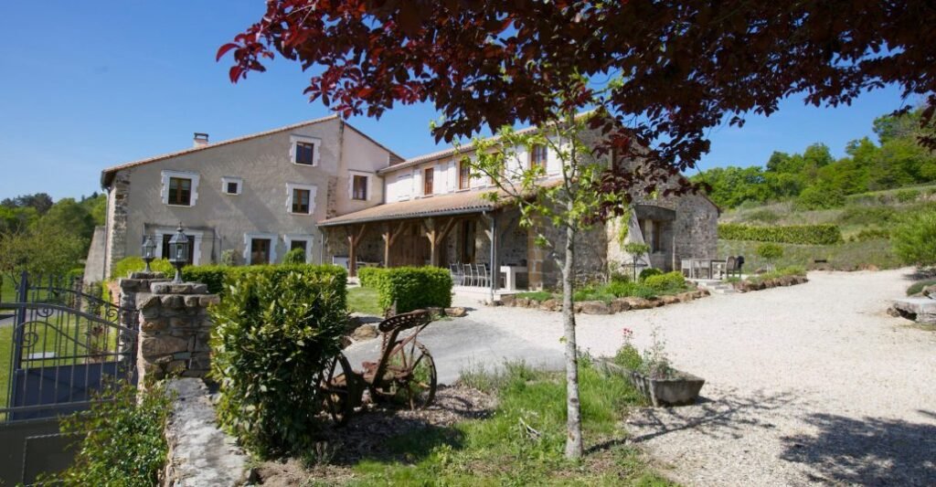 Domaine De Bellac ligt op een heuvel tegen de prachtige achtergrond van de bergen, waardoor u een adembenemend uitzicht heeft over het Franse platteland.